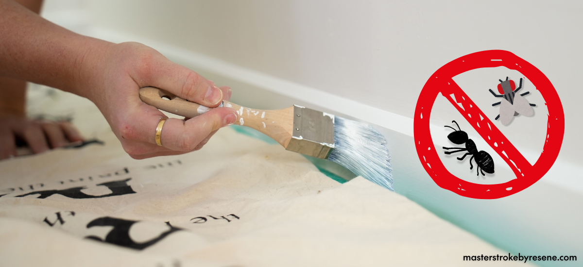 The active ingredient doesn’t seep out of the painted surface, it’s only released when an insect makes contact. It’s fantastic for keeping ants out of kitchens, spider webs off your weatherboards and bugs out of your home for good by painting around your entry points.