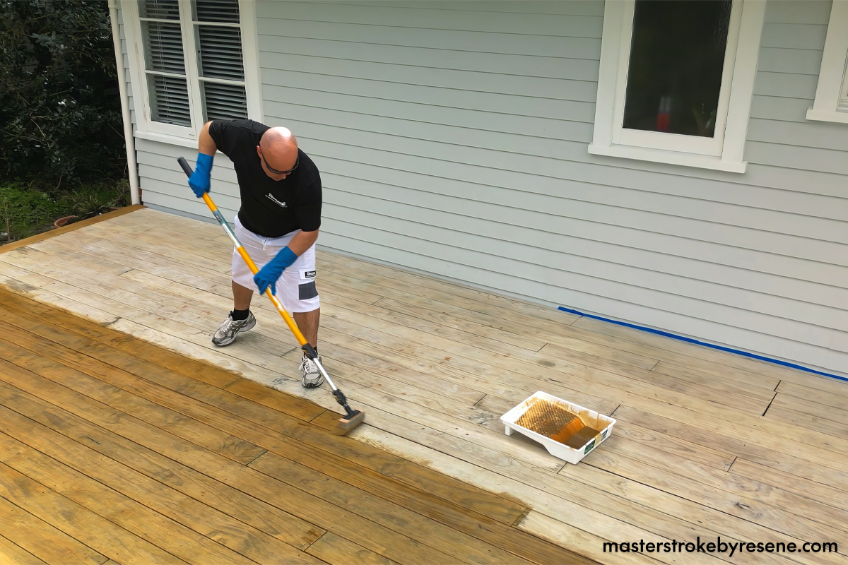 Why: Resene Waterborne Woodsman is Resene’s most durable wood stain, however for old and badly weathered timber, Resene Woodsman Wood Oil Stain will perform better. Both are best applied using a good-quality synthetic bristle brush, such as the PAL Legend.
