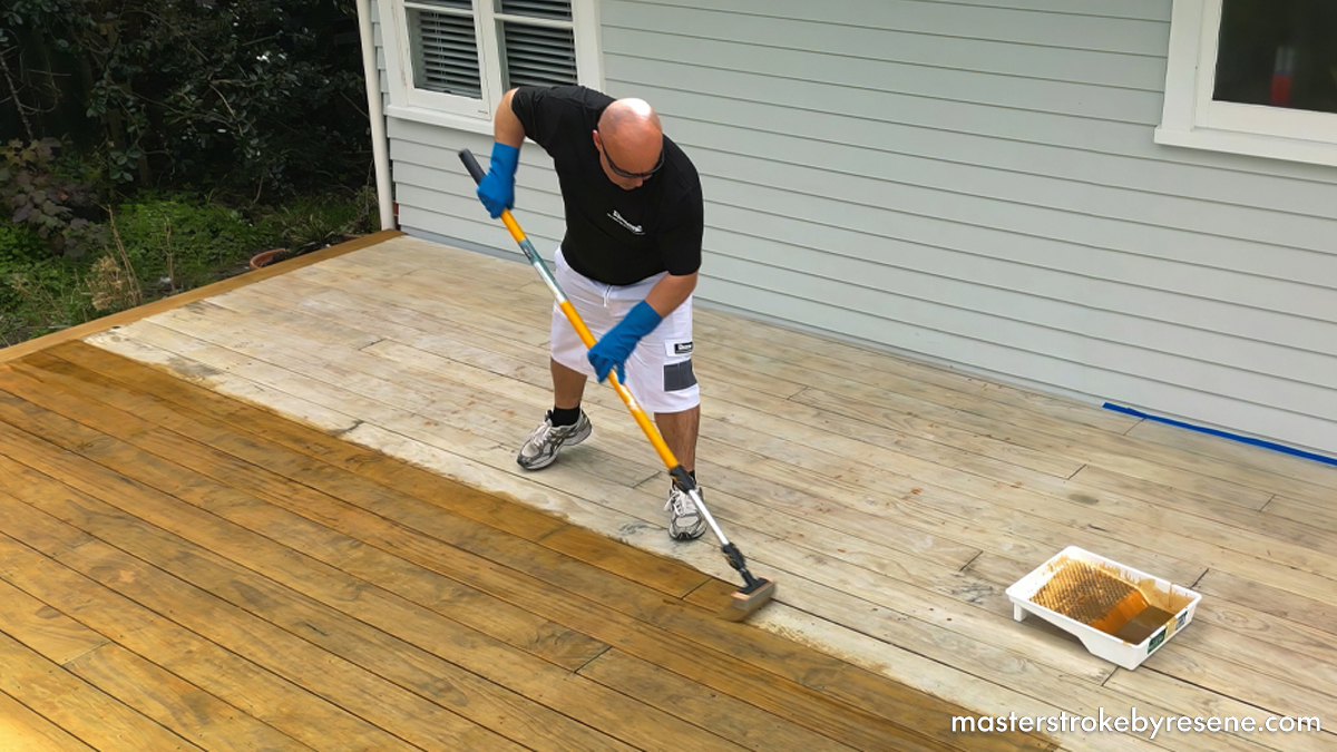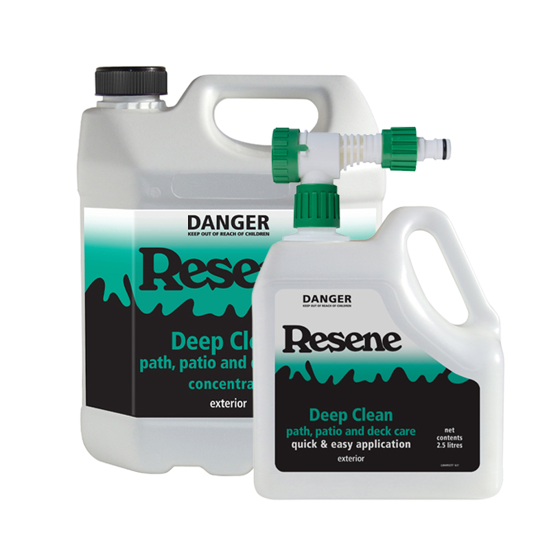 For stained timber – and if the deck has lots of grime, debris or sea salts from a coastal location – treat with Resene Moss & Mould Killer and give it a good scrub when washing it off. If the deck just gets a lot of mould, then Resene Deep Clean is a great option – it works as a long-term mould killer that doesn’t need to be removed. Resene Deep Clean is available in a concentrate and in a convenient and quick-to-apply pack that attaches to your garden hose.