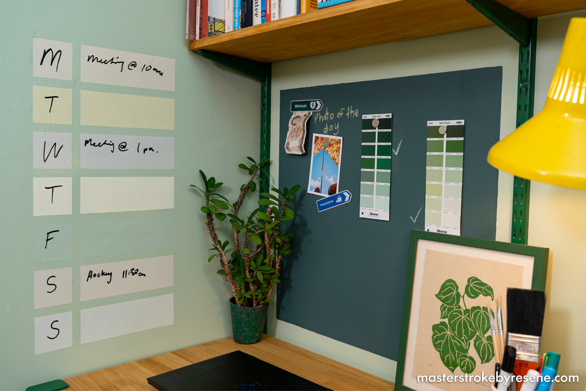 If your home office – or repurposed spare room or small corner nook – needs a bit of a lift, there are a few things to do to make it a more usable space. Having the right set-up will help increase productivity and output, as well as create an environment where you’ll be able to focus and create to the best of your ability. These DIY projects are brought to life with Resene paint and stain and are great ways to add practical and stylish touches to your office space.