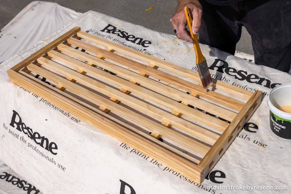 Jae coated the main structure in Resene Lustacryl semi-gloss waterborne enamel in Resene Black White, and brought out the beauty of the timber shelves with Resene Aquaclear waterborne urethane varnish. Of course you can customise yours to suit the aesthetic of your own home.