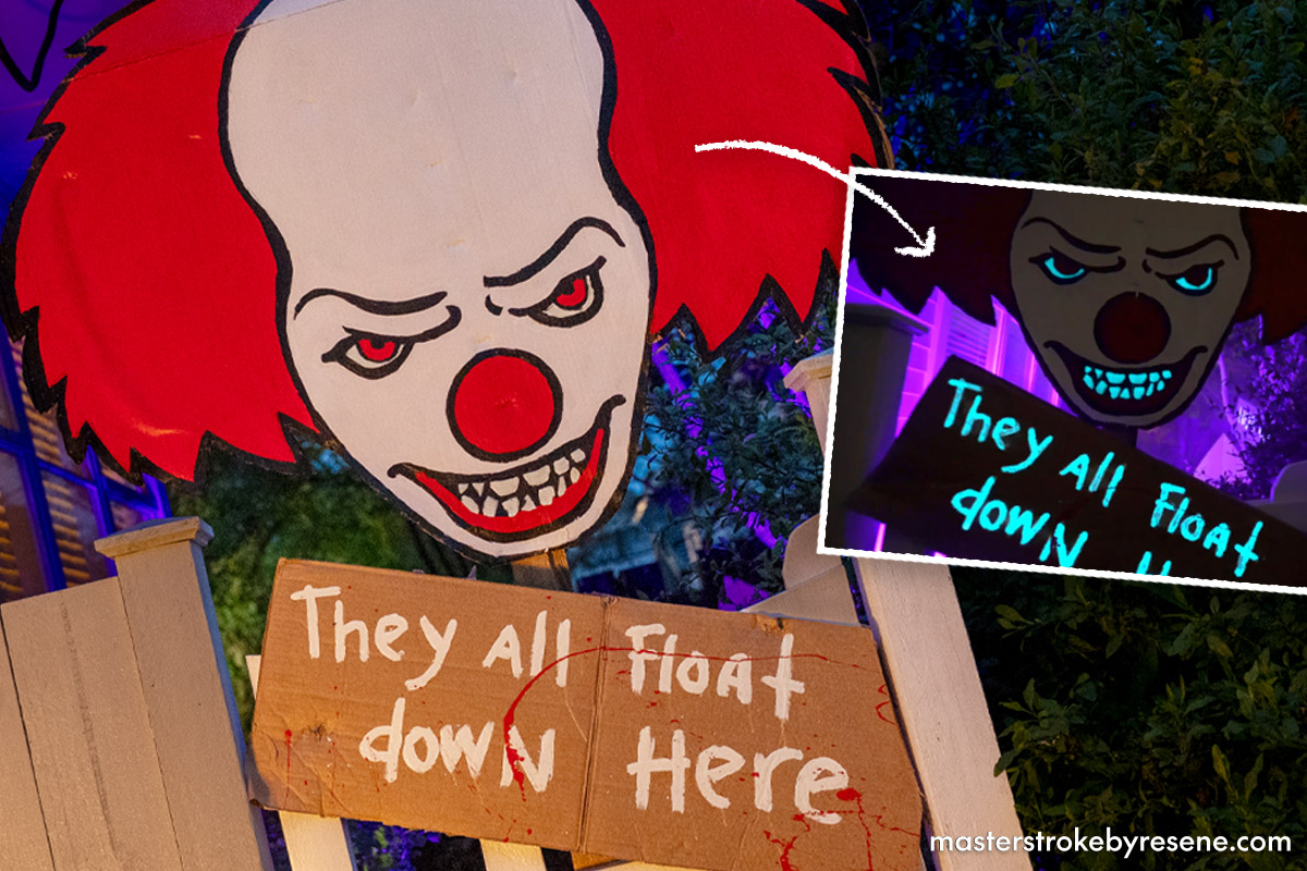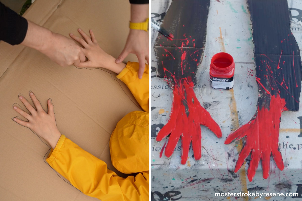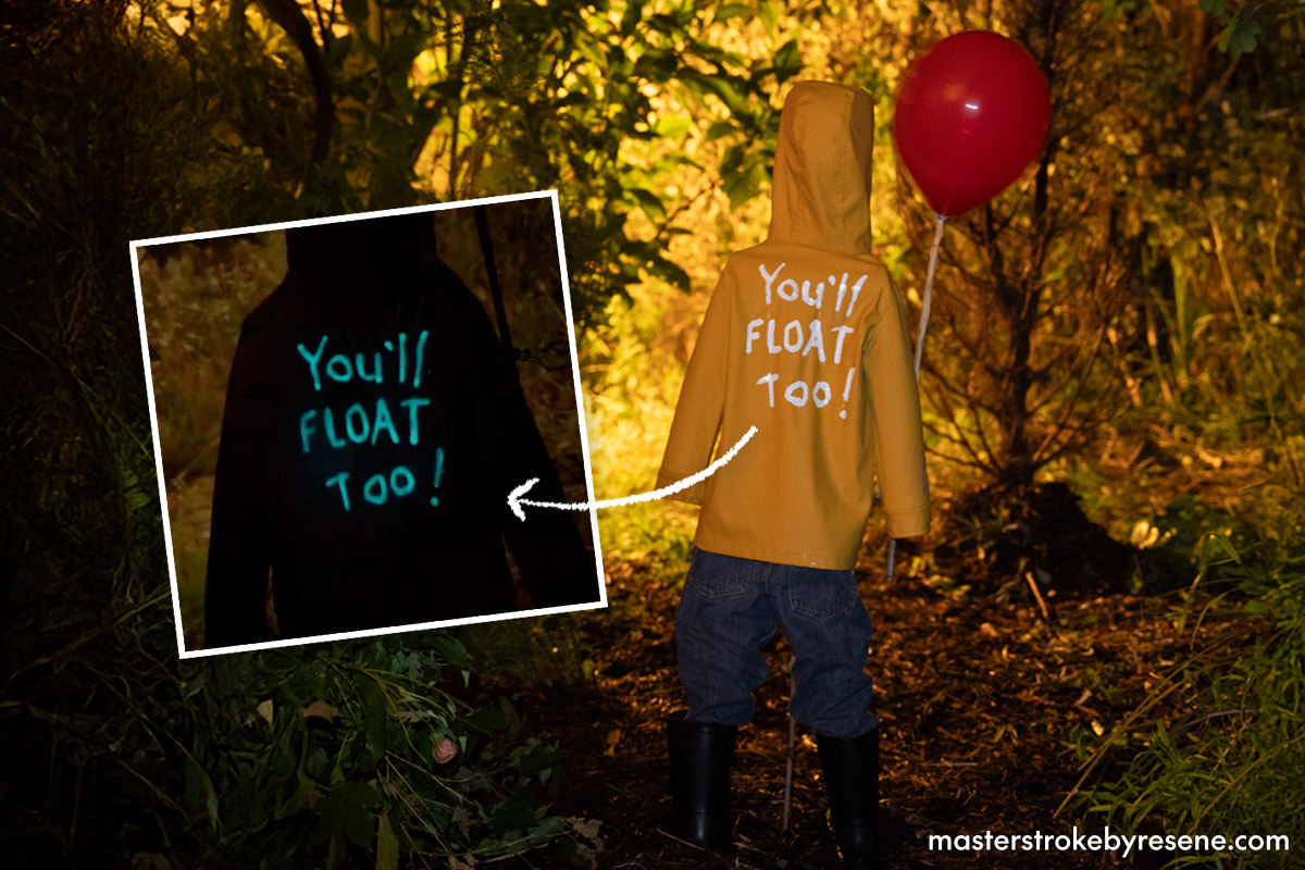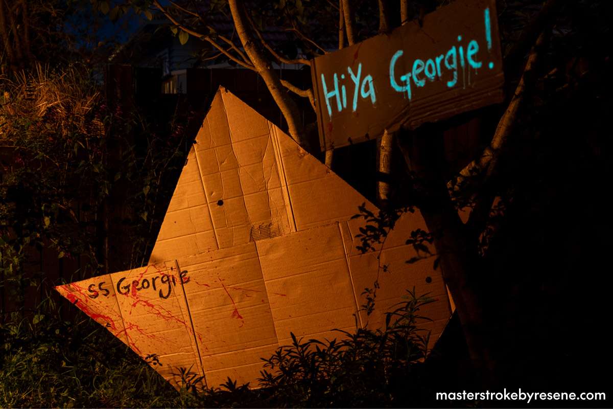 Fans of the spine-chilling Stephen King classic will recognise Georgie and Pennywise the Clown, which Jacob has made a horrifying homage to using some household supplies brought to life with Resene testpots and the very clever Resene FX Nightlight glow-in-the-dark paint. The glow of Resene FX Nightlight ‘charges’ during the day, and then the glow slowly disappears at night the longer the lights are off. To get a longer glow effect you need to apply more of the product (though there is a limit at which you won’t get any extra glow benefit).