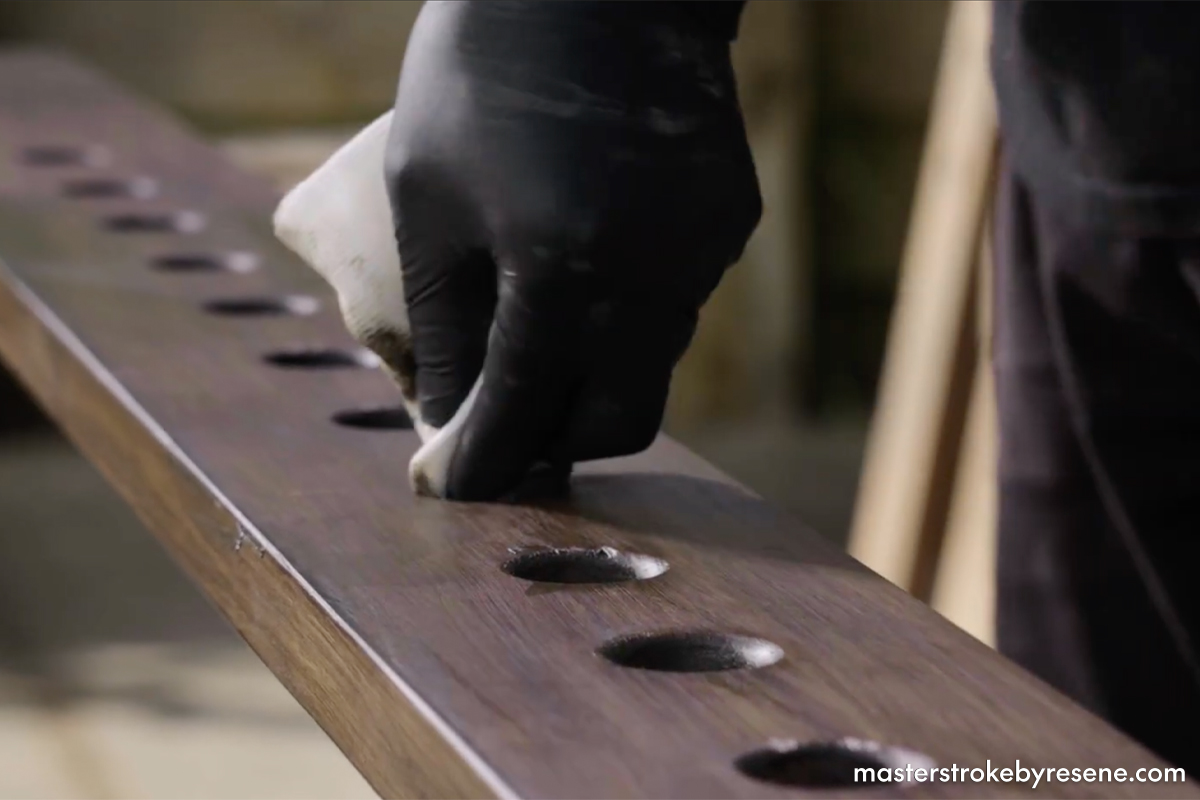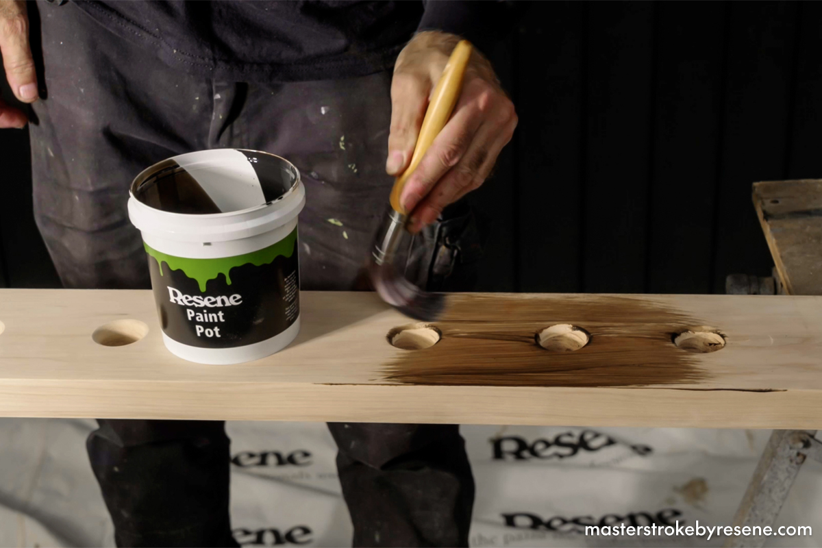 Jae is a big fan of Resene stains and of finishing pieces with a vintage wax – it’s a technique he uses on the frames of his signature artworks. When applied to the timber and worked into the crevices and corners, the vintage wax highlights details and creates an aged, antique look.