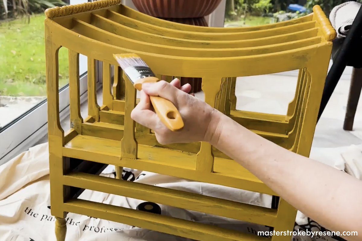 Gretchen found this record holder in a Matakana op shop and has chosen to repurpose it for her three-year-old daughter Margot’s books. Flexing her creative muscles, Gretchen decorated it simply yet effectively by gluing some large wooden beads along the top and applying a pop of fun, punchy mustard yellow using two coats of Resene Hot Toddy.