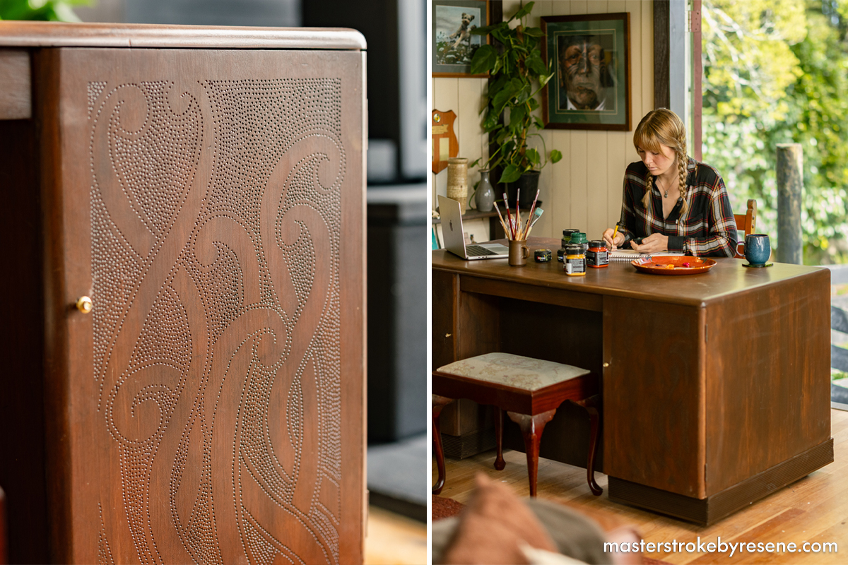 Part of the art room reimagining was finding a desk for Chanelle to sit and work at – one that suited the space and was big enough to accommodate all kinds of artistic projects. She was inspired by the furniture flips she’d seen online and was passionate about restoring an old piece of furniture as opposed to buying new – which fits in with The Current Place ethos.